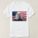 Águila calva americana y bandera americana en cualquier camiseta. Fotografía y diseño de Zina Stromberg. Bandera estadounidense patriótica, águila calva, pájaro de Prey.