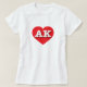 Esta camiseta tiene un vibrante corazón rojo que contiene las letras en negrita blancas altas del funda AK, la abreviatura oficial del estado de Alaska.