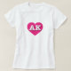 Esta camiseta tiene un vibrante corazón rosado caliente que contiene las letras audaces, blancas, fundas superiores AK, la abreviatura oficial de Alaska, la última frontera.