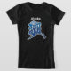 La camiseta del chica muestra el apodo de Alaska "La última frontera" - tipografía de estilo retro colorido en forma de silueta estatal sobre fondo negro