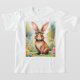 Celebra el Día de Pascua y el momento de la felicidad de primavera con este diseño "Alegre conejito marrón 1". La imagen muestra un pequeño y alegre conejito marrón con una corona floral en una tranquila pradera.