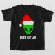 Camiseta Alien Green Face Christmas Santa Hat Believe