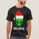 Camiseta Alien Green Face Christmas Santa Hat Believe