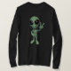 Diseño humorístico de alienígena verde que señala la señal V de la paz: ¡paz mundial, paz global, paz en todo el universo! La gente sonríe cuando ve esta imagen.