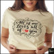 This piece is special for its expressive, hand-drawn brush script typography paired with a deeply romantic quote. The phrase "All of me loves all of you" is artistically framed by ornate swirls and flourishes, giving it a personalized and intimate feel. The distressed texture and red heart accent add a vintage, charming touch, making it ideal for romantic cards, anniversary gifts, or apparel designs.