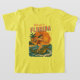 This kitschy throwback beach art is 'only in Florida' energy! A wild pin-up catches a wave as she rides an alligator like a surfboard. The surf beach at sunset scene has bold orange and red colors, complete with palm trees blowing in the tropical breeze. Add a little Florida chaos to your outfit with this fun t-shirt. | Vivid printing is recommended for non-white garments.