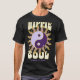 El color es muy bonito al natural, como la foto. El tejido es suave y de buena calidad. Sin defectos en el tintado, ni hilos sueltos o descosidos. Bien la impresión. Los bordes de las letras y el dibujo son nítidos, y el color contrasta muy bien con el de la camiseta.