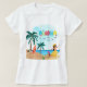 Escape al paraíso con esta magnífica camiseta de inspiración hawaiana. Esta camiseta, con una impresionante acuarela tropical en la playa, exuberantes palmeras verdes y un encantador chica bailarín de Hula irradiando esos despreocupados vibrantes de Aloha, es el accesorio perfecto para días de playa, vacaciones o simplemente llevar un poco de sol contigo donde vayas.