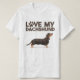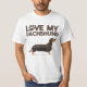 Tipografía sutil para los amantes del dachshund "LOVE MY DACHSHUNDI" con huella animal.