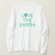 El corazón y el texto azules diseñan amor las camisetas ambientales de la tierra, las tazas, las tarjetas, los pegatinas, las bolsas de asas, las almohadas, las sudaderas con capucha, los botones, los llaveros, y otros artículos para mostrar su ayuda para un ambiente limpio y seguro.