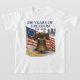 This commemorative America Anniversary T-shirt celebrates 250 years of American freedom with a patriotic design, featuring iconic symbols such as the Betsy Ross flag, the Liberty Bell, a silhouette of a founding father, and the commemorative dates of 1776-2026. Suitable for both children and adults, this versatile template artwork can be adapted for various products. Designed by AI prompt, Susang6.