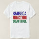 Patriotic typography design featuring the words "America The Beautiful" with star and topographical map textures.