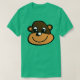 El color es muy bonito al natural, como la foto. El tejido es suave y de buena calidad. Sin defectos en el tintado, ni hilos sueltos o descosidos. Bien la impresión. Los bordes de las letras y el dibujo son nítidos, y el color contrasta muy bien con el de la camiseta.