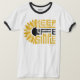 Esta camiseta con forma de jengibre incluye las palabras "Keep Life Simple" en una letra impresa única con letras negras y amarillas con un girasol negro/amarillo a la izquierda en esta cita de la vida de AMMO Apparel USA estilo y tema. Esta camisa tiene un aspecto de inspiración vintage, con esposas contrastantes y un escote para un aspecto deportivo pero casual.