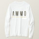 Esta camiseta de manga larga muestra las palabras "AMMO" en una letra impresa fina con letras doradas, contorno negro que compone el acrónimo A.M.M.O que representa (Movimiento Ambicioso que Motiva a otros) en este estilo y tema de AMMO Apparel USA. Estos equipos son cómodos, casuales y holgados, fabricados a partir de 6,0 oz, algodón pre-reducido al 100%, con el fondo cosido de doble aguja y mangas para mayor durabilidad. Nuestros té encajan y se llevan bien en todos y cada uno.