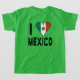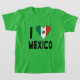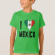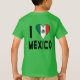 La camiseta del chico usa una bandera mexicana con forma de corazón en lugar de la palabra AMOR. El diseño dice que amo a MÉXICO. La bandera es verde, blanca y roja, con un águila en el centro. Un favor divertido para las celebraciones de Cinco de Mayo, o cualquier ocasión especial. El diseño aparece en la parte delantera y trasera.