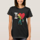 I Love Wine muestra a un fanático del vino olfateando un buen vaso de vino de cosecha mientras sostiene los restos de la botella en su otra mano. Frente a un gráfico de I Love, este es un ilustracion divertido para los aficionados al vino y los amantes del vino.