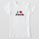 ¡Amo Jack! ¿Es su Jack conocido? ¿Usted tiene una esposa, una novia, un miembro de la familia femenino o un amigo femenino que usted sepa amores usted? ¿O usted tiene un marido, un novio, un miembro de la familia masculino o un varón Jack nombrado amigo que usted ame profundamente? ¡Si es así éste "que amo" la camisa es exactamente el regalo que usted está buscando! Las características del diseño la letra "yo" en letras negras con un corazón rojo en el top y "Jack" en letras negras en la parte inferior.