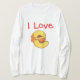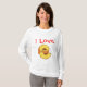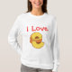 Características del este diseño el texto "que amo" junto con una imagen de un melocotón.