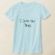Camiseta de los azules cielos que dice, "amo mi perro" en la escritura negra.