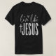 Esta camiseta negra tiene un guión blanco en la parte inferior. Encima, "Me gusta" está escrito en un elegante guión blanco con un corazón pequeño, seguido de "JESUS" en un audaz tipo de letra blanco integrado con una cruz. Se colocan pequeñas estrellas blancas alrededor del texto. Este diseño ofrece un mensaje religioso de amor.