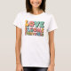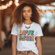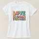 Camiseta Amor Vintage Florece. © Camisetas & Sudaderas en Zazzle. Esta camiseta vintage tiene un diseño retro que dice El Amor Florece En Todas Partes con flores en las letras y en una fuente retro.