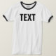 Personalizado Negrita Gran Gran Gran Letra Texto o Nombre Modern Elegante Plantilla Mens Ringer Básico Camiseta Blanca y Negra.