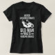 Camiseta anciano que patea cortadora de césped