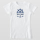 Su nombre de barco personalizado o texto personalizado con ancla náutica, orejas, rueda de barco - casco y estrellas en una camiseta azul y blanca Chica.