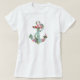 Camiseta Ancla verde rosada roja del estampado de flores