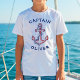 Esta camiseta personalizada presenta un bonito ancla dibujado a mano con llamativas líneas de sketch de estilo rojo y azul para una divertida atmósfera náutica y la frase "Capitán" con un nombre personalizado.