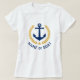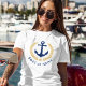 Un personalizado diseñó un ancla náutica, hojas de laurel de estilo dorado y una estrella dorada con y tu nombre personalizado o nombre de barco en una camiseta blanca de mujeres. Hace un gran regalo.
