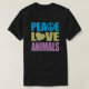 ¿Animales del amor de la paz… qué más usted necesitan en vida? Regalo perfecto para cualquier adicto animal. ¡No importa si usted es veterinario/veterinario, usted trabaja o se ofrece voluntariamente en un refugio del rescate para los perros abusados y homless, los gatos, y otros animales, usted corre una granja del caballo, usted tiene más mascotas que niños, usted va al parque zoológico a ver todos los animales cada ocasión que usted consigue, o su justo obsesionado con los pájaros, los perritos, los gatitos, los conejos, los hámsteres, las vacas, los cerdos, o cualquier otro animal… le envician a los animales! Idea divertida del regalo para cualquier amante animal. Grande para cualquier diva animal. Características del diseño un corazón y un signo de la paz. Vea nuestra tienda para más diversión y paz única amar… el camisetas y los regalos.
