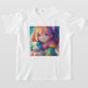 Hermoso chica de Anime con dos ojos de colores diferentes sosteniendo un adorable cachorro. Ai art. generatvientent para niños, lindo y colorido