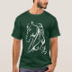 Ilustraciones de la cabeza de caballo blanco con el símbolo para el caballo, la camisa verde del carácter chino de los hombres. Este diseño parece el mejor en negro o camisetas oscuro-coloreado. El año del caballo es uno de acción, de aventura, de viaje y de romance. El caballo también representa progreso, carisma, el trabajo productivo, la energía solar y la libertad. Si usted nació en un año del caballo usted es encantador, social, digno de confianza y razonable. Usted puede ser llamativo y es a menudo la vida del fiesta. El caballo es un animal del poder para mucha gente, incluyendo hombres de negocios, los viajeros, los atletas, los constructores y los ingenieros, los artistas y los ejecutantes, gente en ventas o los empleos social-orientados, los que trabajen cerca (o con) de la tierra. En la astrología china, el caballo es una muestra del fuego y asociado al número siete.