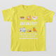 Este es un diseño de desayuno que hice. Me puse crepes, tostadas francesas, harina de avena, leche y cereales, bacon y huevos, jugo de naranja. El texto dice que el desayuno es la comida más emocionante del día. Elecciones de alguien.