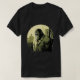 El diseño de la camiseta representa a un gorila vestido como un humano en el fondo de una ciudad. La obra de arte se ejecuta en un estilo muy minimalista de historietas de dos colores. El gorila se muestra usando una camisa y pantalones, y el paisaje urbano en el fondo está estilizado con formas y líneas simples.