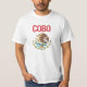 Una camiseta que ofrece un águila mexicana apenada que ofrece el apellido Cobo.