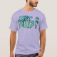 El color es muy bonito al natural, como la foto. El tejido es suave y de buena calidad. Sin defectos en el tintado, ni hilos sueltos o descosidos. Bien la impresión. Los bordes de las letras y el dibujo son nítidos, y el color contrasta muy bien con el de la camiseta.