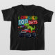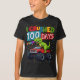 Diseño divertido y juguetón de camiseta que presenta un dinosaurio montando un camión monstruo con confeti colorido, celebrando 100 días de escuela. Ideal para niños, padres y maestros para marcar este emocionante hito educativo de manera vibrante y creativa.