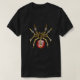 Araña mecánica, de vapor punk con oro, engranajes de latón y una lámpara de vidrio roja sobre un fondo negro. Estilo Steampunk.