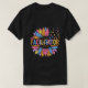 El color es muy bonito al natural, como la foto. El tejido es suave y de buena calidad. Sin defectos en el tintado, ni hilos sueltos o descosidos. Bien la impresión. Los bordes de las letras y el dibujo son nítidos, y el color contrasta muy bien con el de la camiseta.