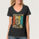 Camiseta con cuello en V de mujer, Negro, XL de adulto