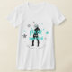 Inicia la fiesta con esta divertida camiseta de "Disco Despedida de Soltera" en plateado brillante y teal sobre fondo negro. Una silueta de vaquera con sombrero plateado brillante y tipografía llamativa de "a punto de casarse", está acentuada por estrellas. Agrega tu nombre (o deja La Novia, como se muestra) y la fecha del evento utilizando la plantilla proporcionada. Busca ID925 para ver otros productos de la colección de moda.
