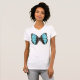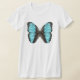 Camisa de mariposa azul con un dibujo digital que muestra la belleza y elegancia de una de las criaturas más impresionantes de la naturaleza - la mariposa de Morfo Azul. La obra de arte captura la esencia de las alas azules iridiscentes de la mariposa. El fondo de las obras es sencillo, con un blanco acolchado que contrasta con el azul vibrante de las alas de la mariposa. Es una adición perfecta a la colección de los amantes de la entomología y del arte de los insectos y un tributo a la impresionante belleza del mundo natural.
