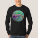 Esta camisa colorida de la ballena del diseño del batik ofrece un dibujo de la ballena jorobada de una cabeza, de un ojo y de aletas bajo el agua. Púrpura, trullo, marrón, marina de guerra y remolino amarillo junto para crear el arte submarino acuoso.