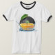 El color es muy bonito al natural, como la foto. El tejido es suave y de buena calidad. Sin defectos en el tintado, ni hilos sueltos o descosidos. Bien la impresión. Los bordes de las letras y el dibujo son nítidos, y el color contrasta muy bien con el de la camiseta.