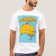 Este mapa ilustrado de Australia se representa en un vibrante estilo de arte pop. El mapa está delineado en negro y lleno de un color amarillo brillante, puesto sobre un fondo azul con un patrón punteado. Las principales ciudades de Australia están etiquetadas en cajas azules