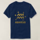 Camiseta personalizado para "Aquarius" con símbolo zodiaco y estrellas en oro. Hay varios colores de camisa disponibles; el color que se muestra es azul marino.