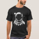 An astronaut is illustrated inside a black and white circle, representing the exploration of the cosmos in monochrome.